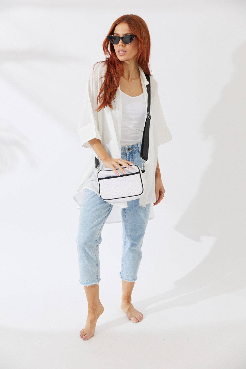 Meet your new favorite accessory: the versatile white Neoprene Crossbody Bag! Compact, cruelty-free, and perfect for any occasion. Dimensions: 25x18x6cm, with an adjustable strap for the ultimate comfort and style. Ready to go wherever you do!